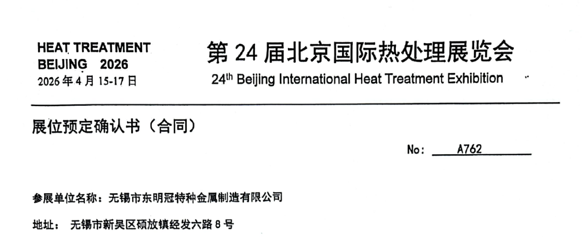 Wuxi Dongmingguan Special Metal Manufacturing Co., Ltd., located on the scenic banks of Taihu Lake in Jiangsu Province, is proud to announce its participation in the 24th Beijing International Heat Treatment Exhibition, organized by the China Heat Treatment Industry Association. As the only international professional heat treatment exhibition in China, this flagship event brings together leading companies, technical experts, and industry stakeholders from around the globe, aiming to promote technological advancement, expand market channels, and elevate the overall level of the heat treatment industry.